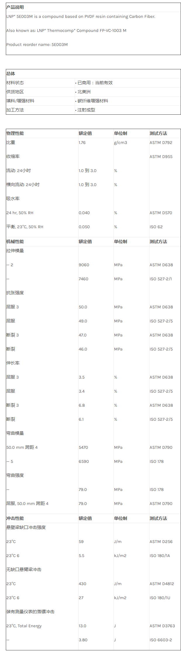 应用范围:产品描述LNP THERMOCOMP 5E003M物性表