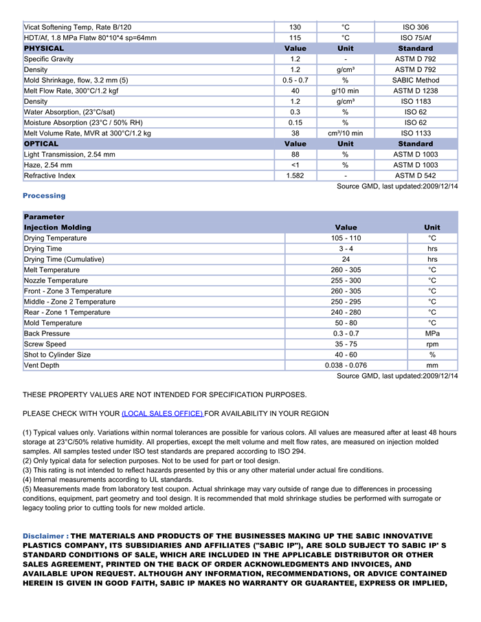 LEXAN PC EXRL0685物性表